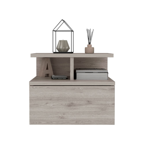 Good looking design and practical styling meet to form this 12-inch light gray wood one drawer nightstand. Made of high quality manufactured wood that is built to last. The easy open drawer allows you hidden storage to keep your essentials close at hand. 2 shelves are included for you to have additional storage and display space. The unsung hero of the bedroom, this nightstand is perfect for keeping a glass of water, lamp, alarm clock, jewelry, and more, close by and easily accessible. Nightstands are obviously great beside the bed but can be used just as easily to help battle clutter in your living room, hallway, office, or dining room. 11.61-inch h x 14.02-inch w x 13.23-inch d.